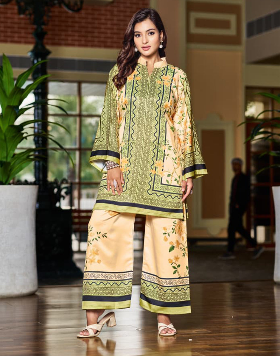 Trendy Beige Printed Satin Co-Ord Styli...