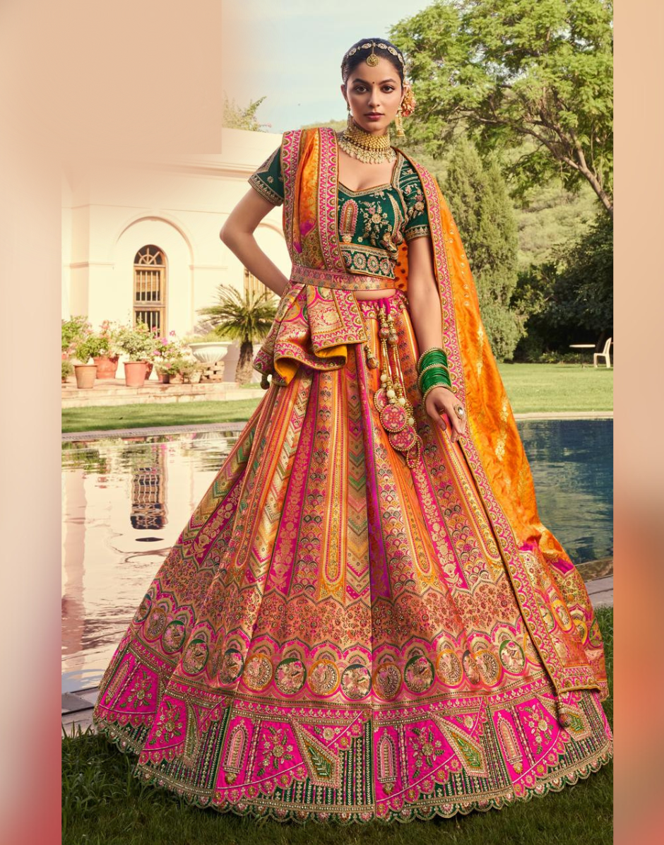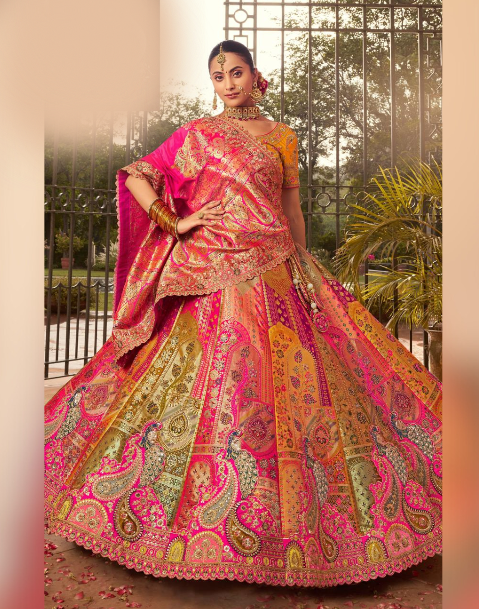 Elegant Pink Silk Lehenga Set Zarkan & ...