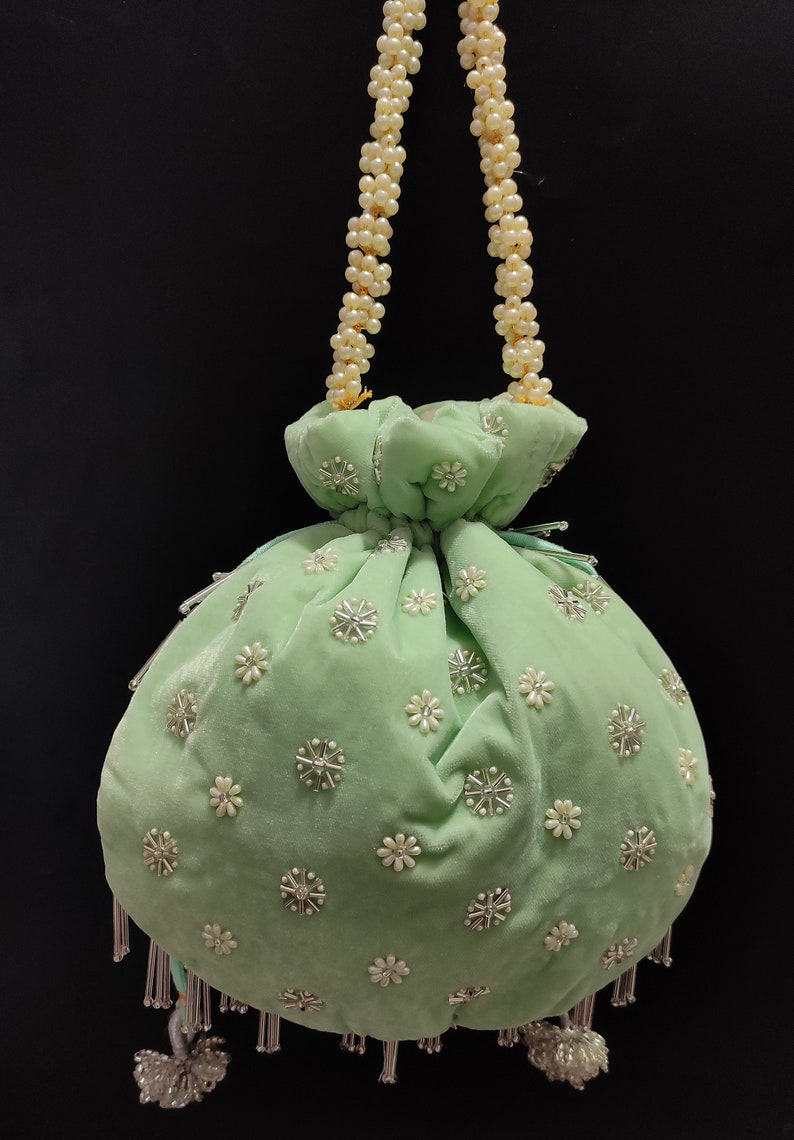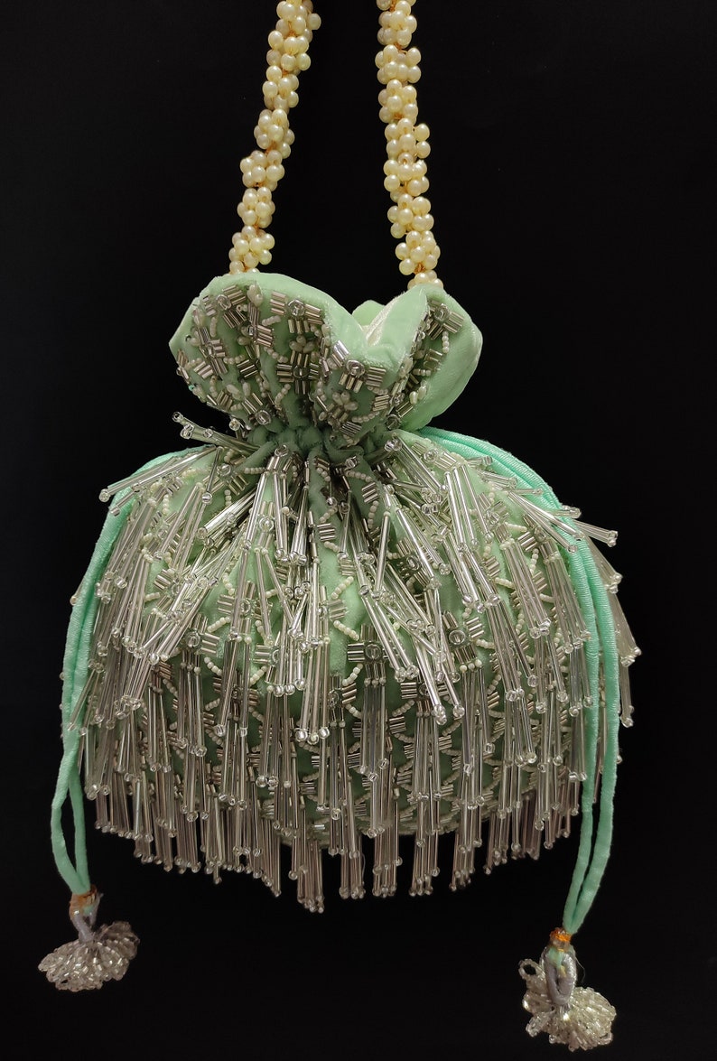 Sea Green Beaded embroidered Potli - Rent