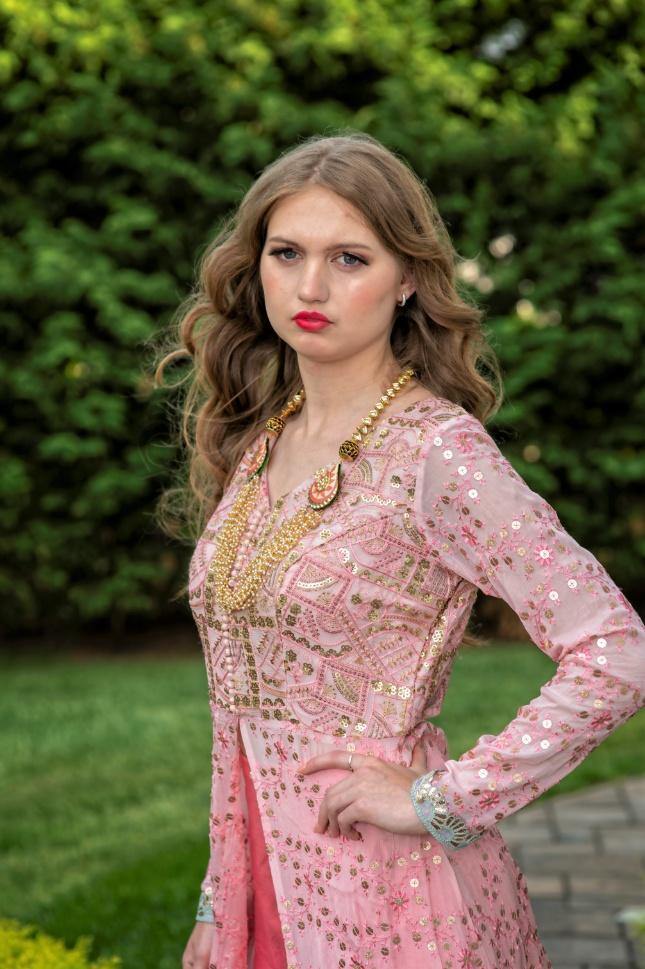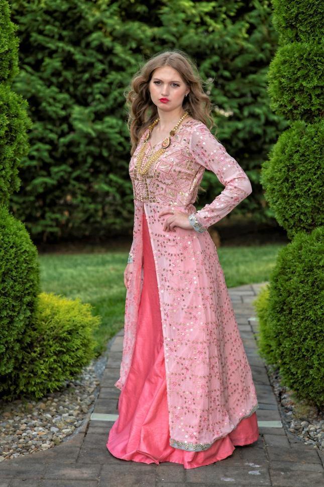 With its soft net fabric and delicate pink hue, this anarkali set is perfect for...