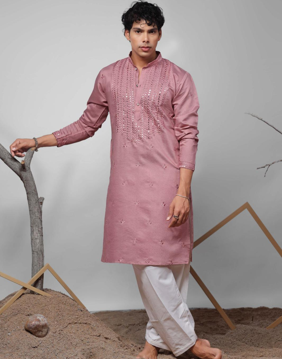 Elevate your ethnic wardrobe with the Mauve Magic Embroidered Art Silk Kurta Pyjama Set for...