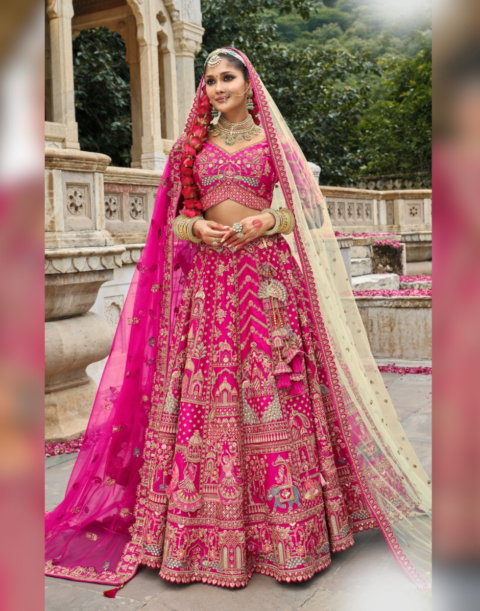 Timeless Pink Bridal Silk Lehenga with ...