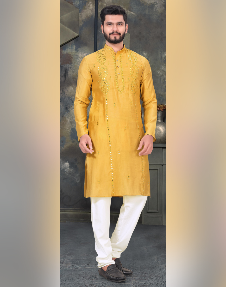 Men’s Jacquard Kurta with Sequins Detailing and Cotton Pyjama Traditional Indian Outfit