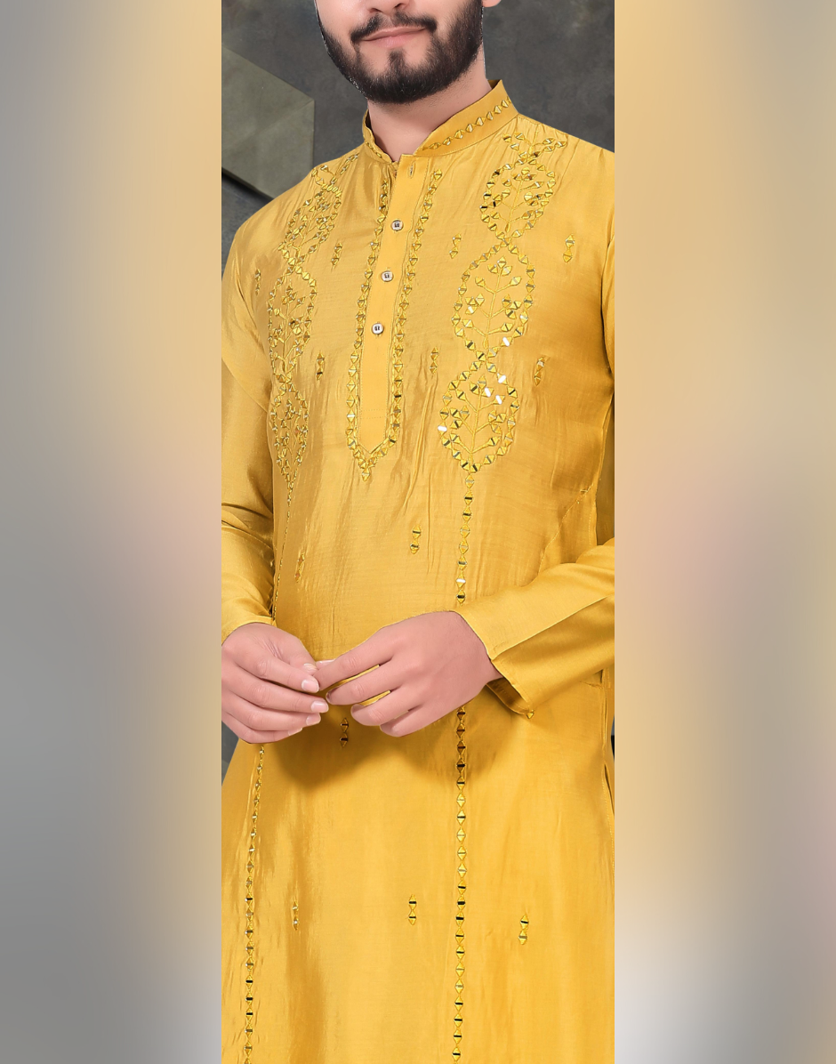 Men’s Jacquard Kurta with Sequins Detailing and Cotton Pyjama Traditional Indian Outfit_3