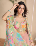 Elevate your wardrobe with this Blush Pink Chinon Silk Co-Ord Set, featuring an intricately embroidered shrug paired with a hand-embellished blouse and flowing palazzo pants. Crafted from soft Chinon silk, this ensemble offers both luxury and comfort, while the detailed embroidery adds a refined, artisanal touch. Perfect for sophisticated occasions, the coordinated pieces blend elegance with effortless style for a standout look.