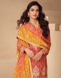 Elevate your ethnic wardrobe with the Chinnon Silk Top Palazzo Dupatta Set in vibrant yellow and orange hues. This expertly crafted ensemble features detailed embroidery that adds refined texture and visual interest. The soft chinnon silk fabric ensures a comfortable, breathable fit, while the coordinated palazzo pants and matching dupatta complete a balanced and elegant look perfect for festive occasions or formal events. Embrace a blend of tradition and contemporary style with this versatile set designed for graceful wear.