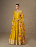 Chinnon Silk Yellow Anarkali Outfit for Women Intricate Embroidery with Floral Dupatta - Buy
