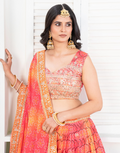 Expertly crafted in luxurious Chinon Silk, this Lehenga Blouse Set is a stunning combination of traditional and contemporary elements. The intricate digital print adds a modern touch, while the sequin embroidery and lace work dupatta add a touch of elegance. Perfect for any occasion, this set will leave you feeling confident and stylish.
