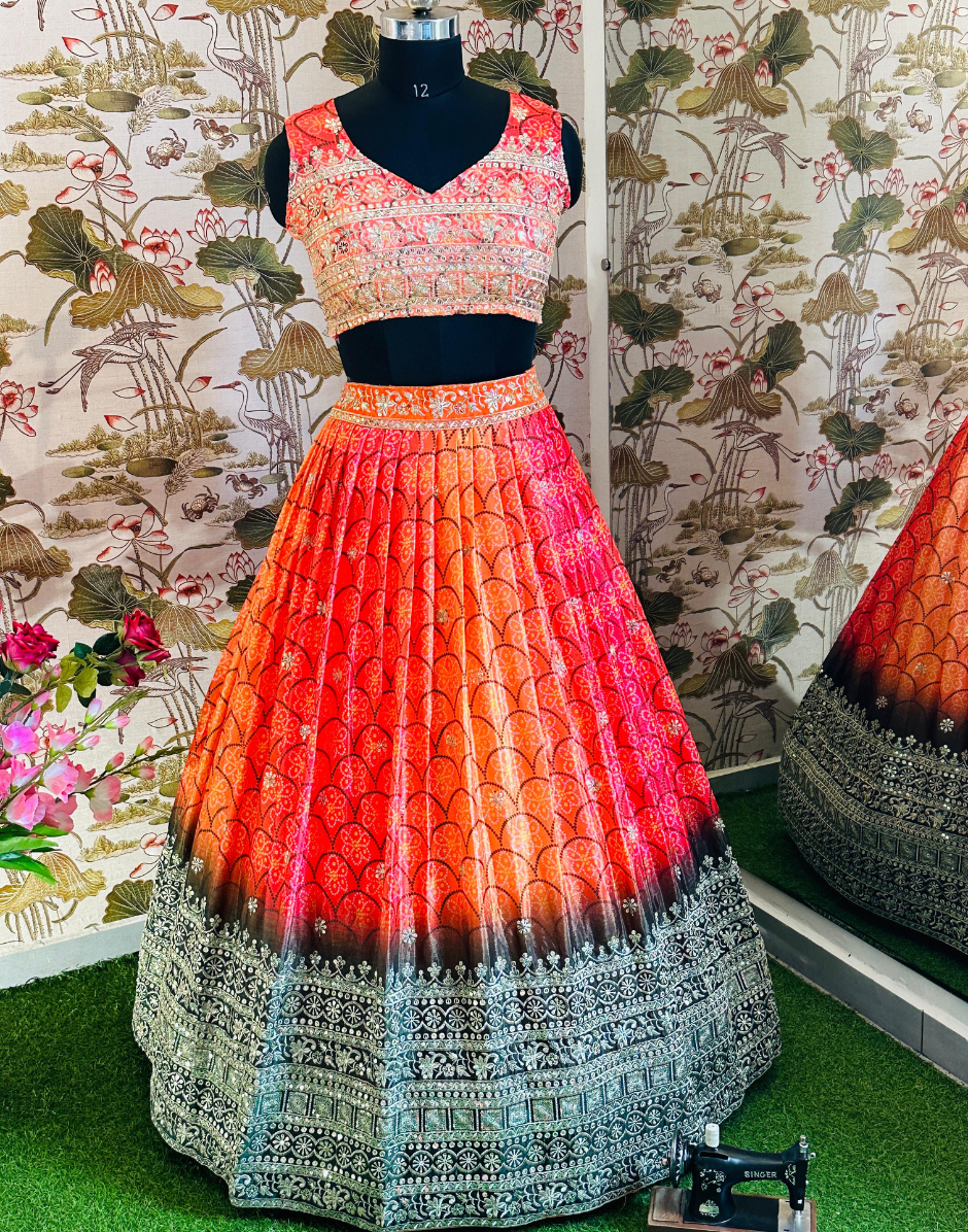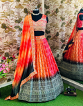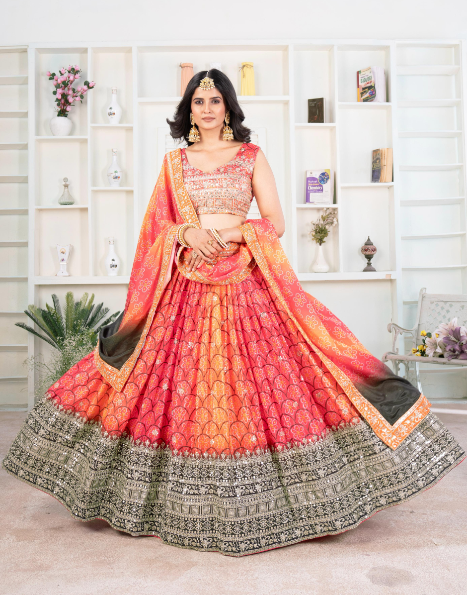 Chinon Silk Lehenga Blouse Set with Digital Print, Sequin Embroidery & Lace Work Dupatta