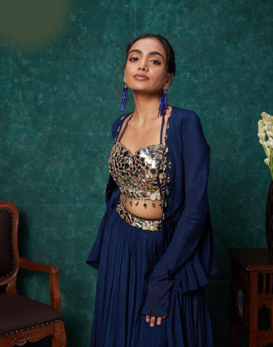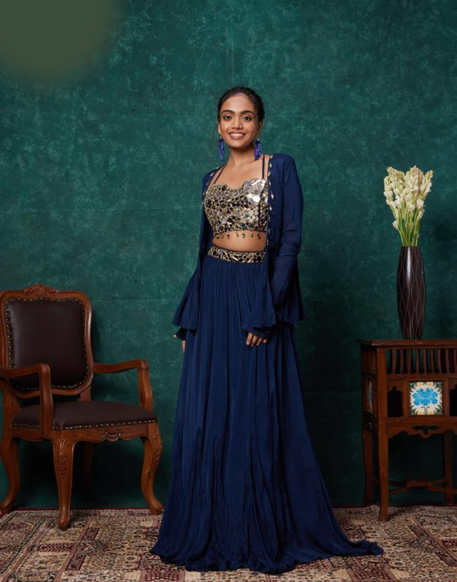 This 3-piece ensemble features an elegant blue embellished chiffon set that adds a touch of sophistication to any contemporary look. Made from high-quality materials, this ensemble exudes refined style and comfort. Perfect for any occasion, this ensemble is a must-have for those looking for a chic and versatile outfit.