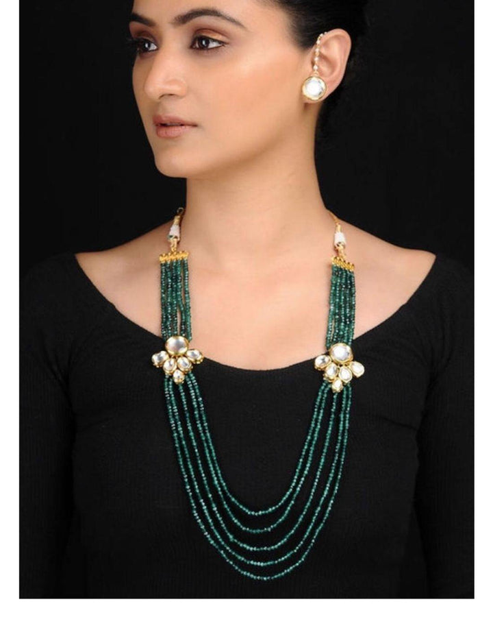 Add elegance to your look with this stunning Emerald Green Kundan Necklace, complete with matching studs. Featuring intricate Kundan craftsmanship and vibrant emerald stones, it's perfect for weddings and special occasions. Lightweight and comfortable, this set offers a regal touch to any outfit.