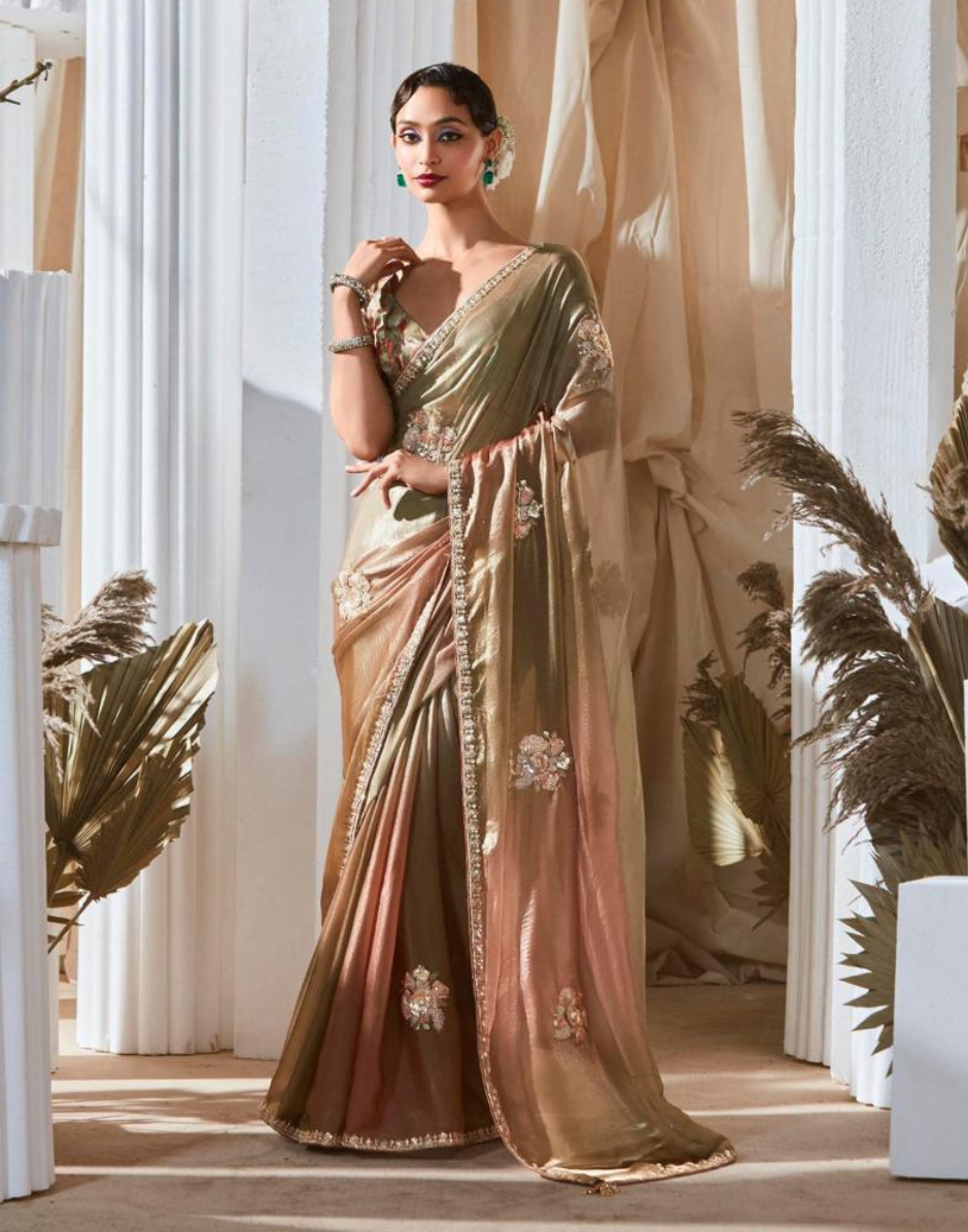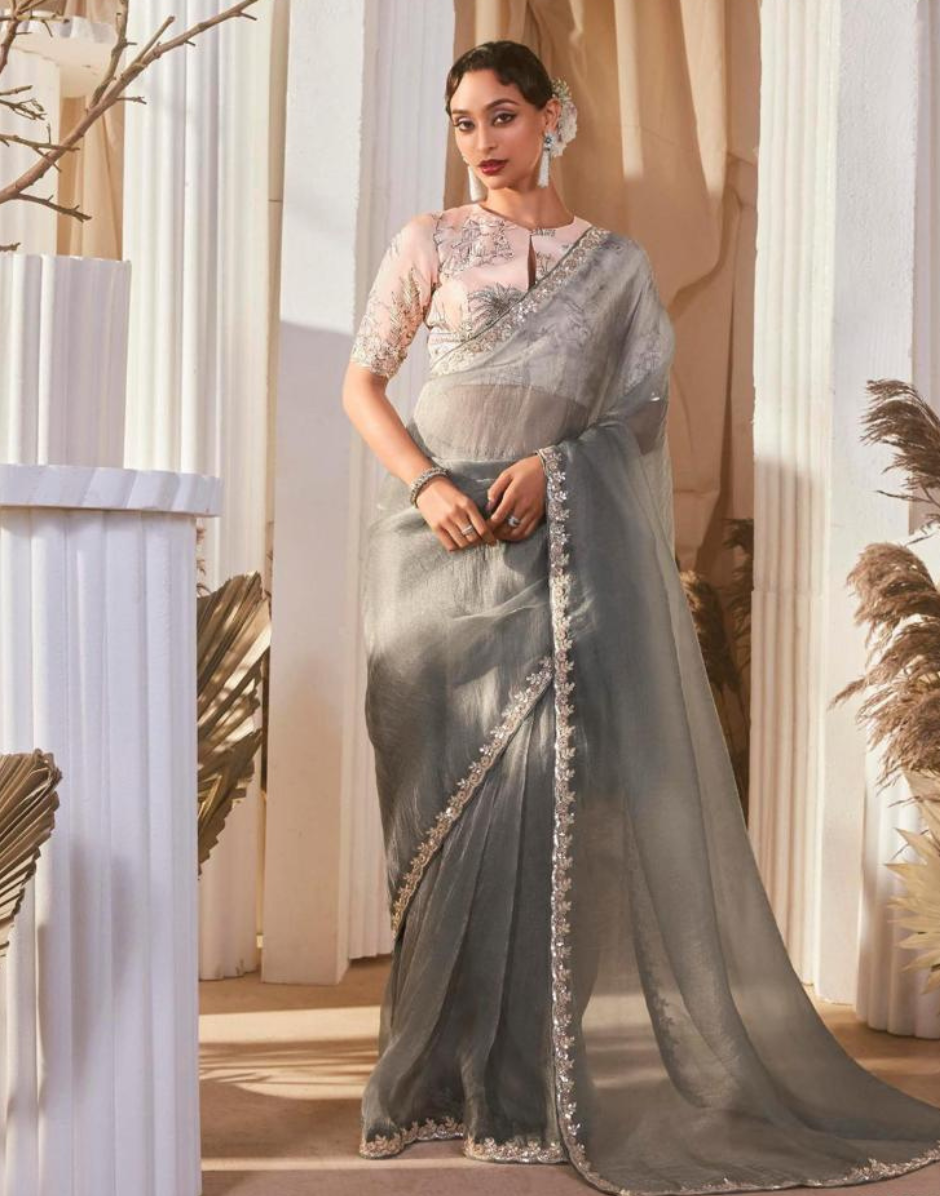 Elevate your traditional wardrobe with this Graceful Embroidered Saree featuring a dual-tone floral design. The finely crafted embroidery adds depth and texture, beautifully complemented by a printed blouse that enhances the ensemble’s refined charm. Perfect for formal occasions, this saree balances intricate artistry with wearable elegance, ensuring a sophisticated statement at every event.