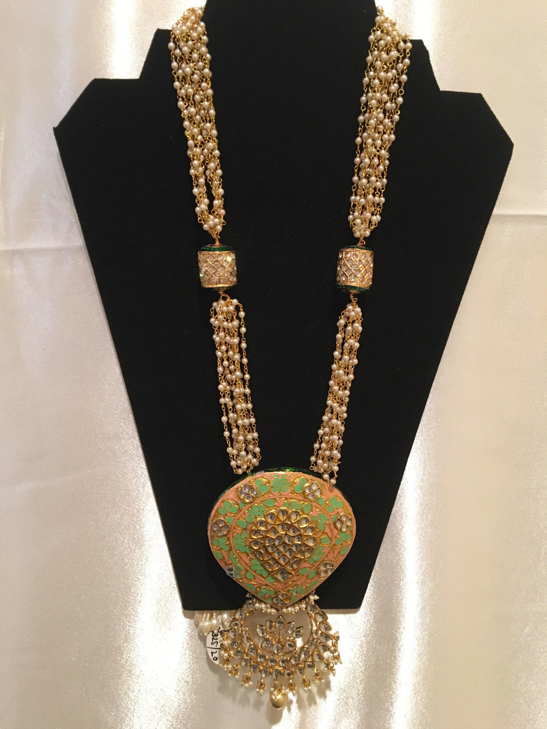 Green and Ivory Motifs Meenakari Long Necklace