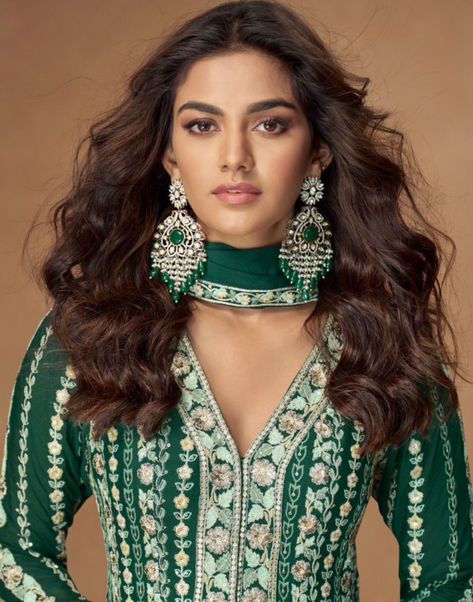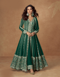 Green Chinnon Silk Embroidered Anarkali Set with Sequin Detailing and Dupatta Perfect for Festive Wear