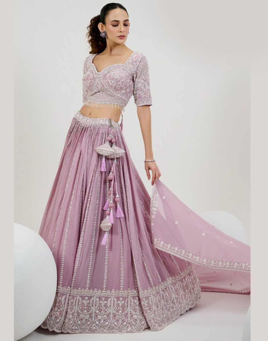 Lavender Lehenga with Georgette Jacquard Embroidered Blouse & Handwork Dupatta Set