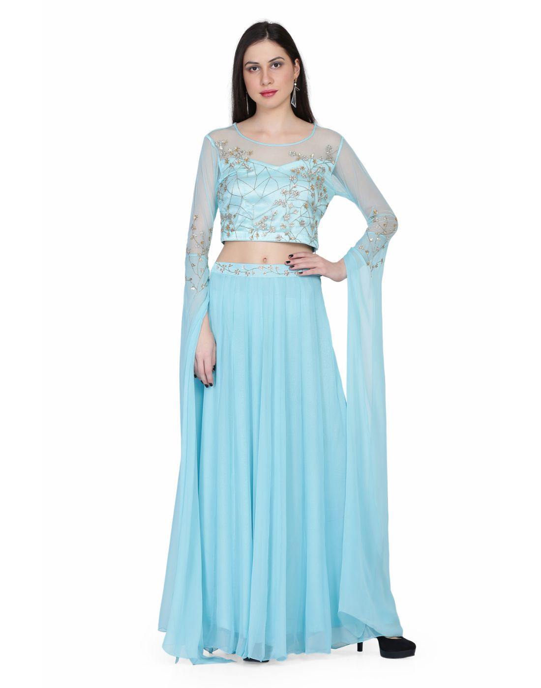Miracolos By Ruchi's Buy Sky Blue Georgette Croptop-skirt - Rent
