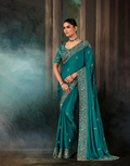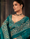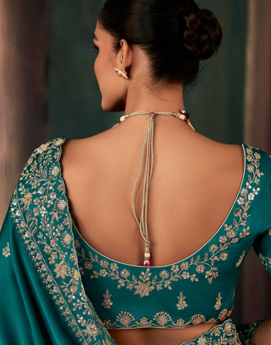Opulent Emerald Green Saree Exquisite Handwork & Aari Motifs with Matching Blouse - Buy