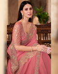 Peach Georgette Saree with Georgette Work Blouse Elegant Ethnic Ensemble - Buy