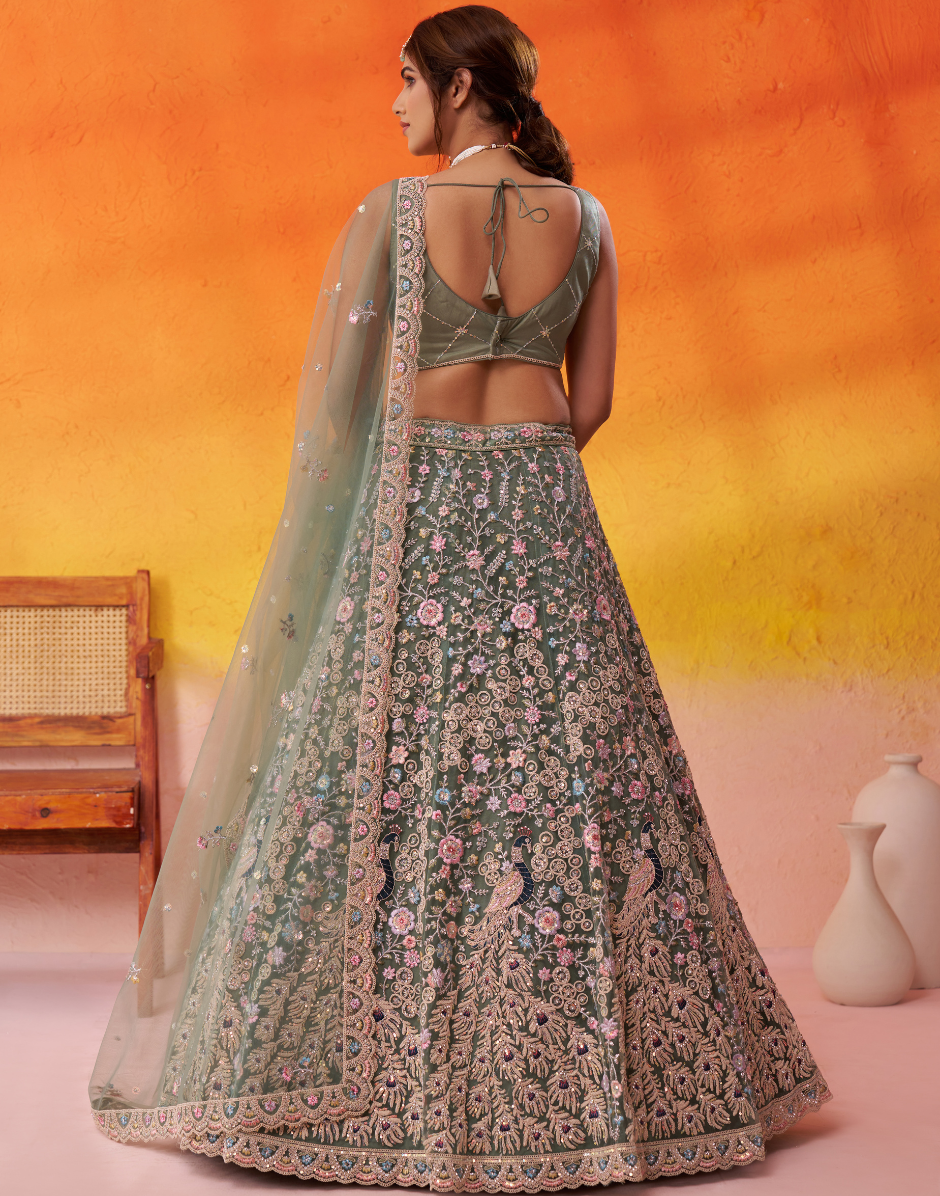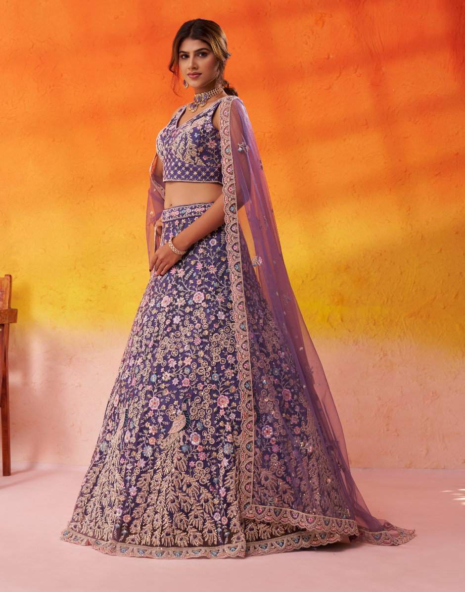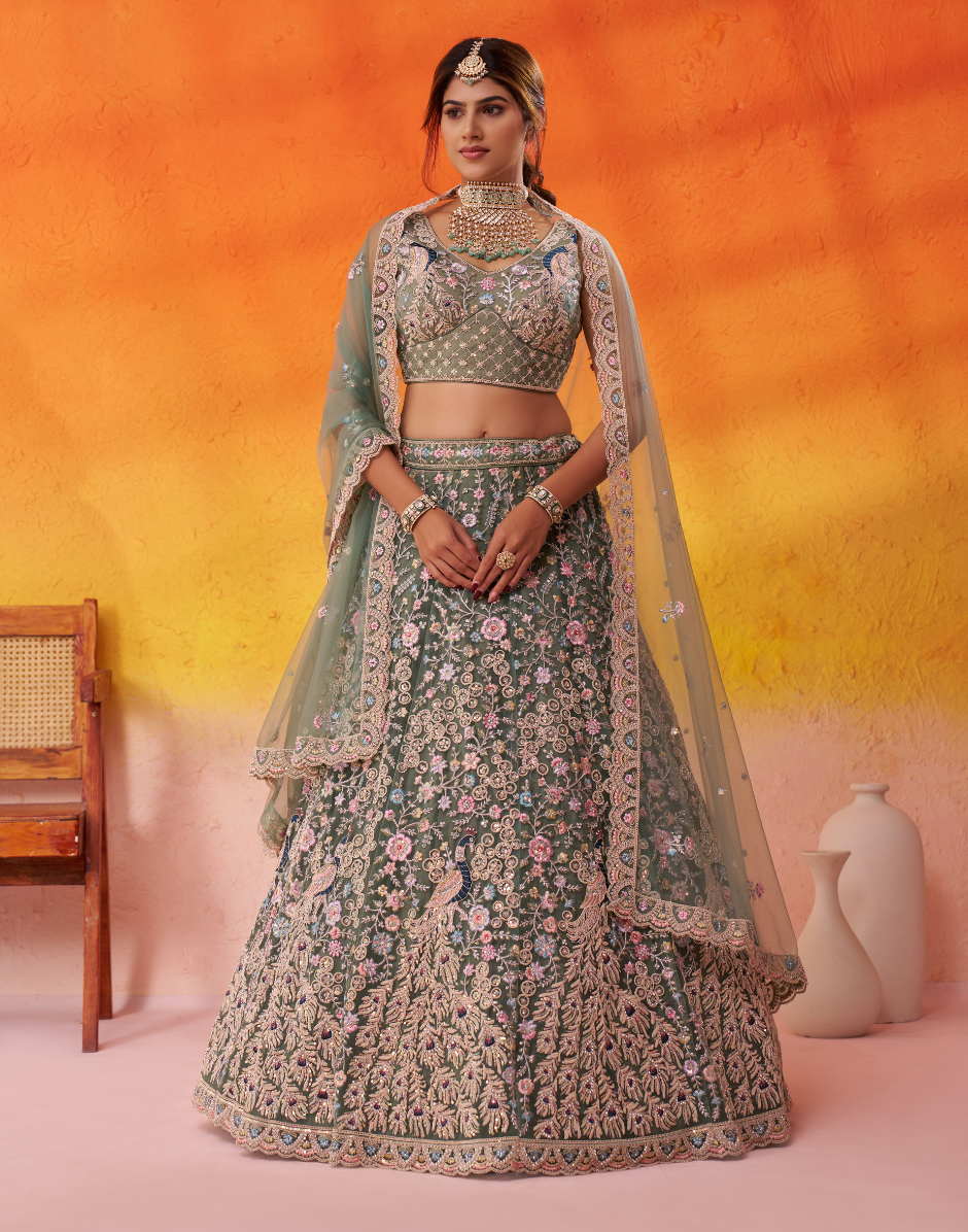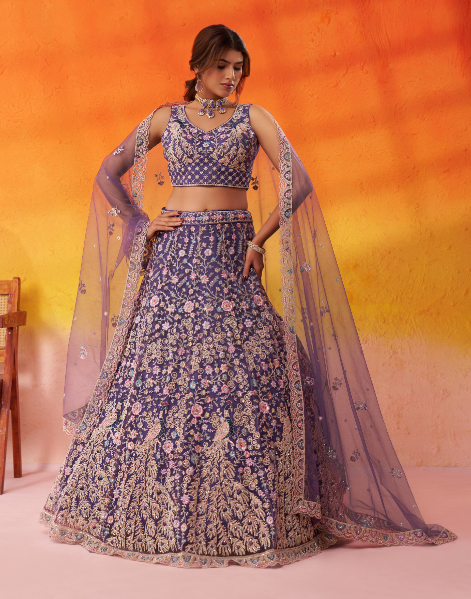 Premium Net Fabric Sequins Embroidery Lehenga & Blouse with Dupatta - Buy