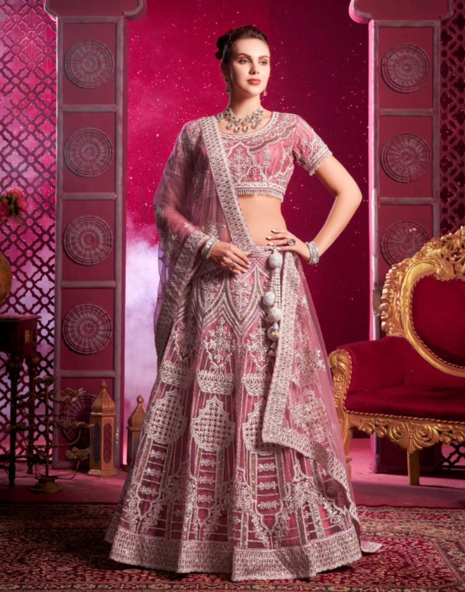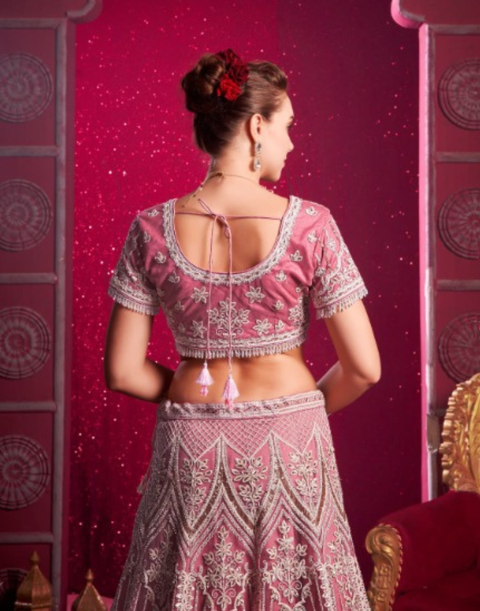 Premium Pink Lehenga Blouse Dupatta Set with Zarkan, Latkans & Hand Embroidery - Buy