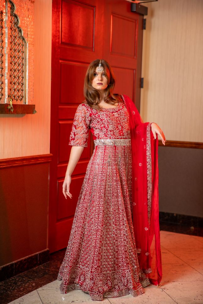 Red Anarkali Suit with Heavy Embroidered Work - Rent