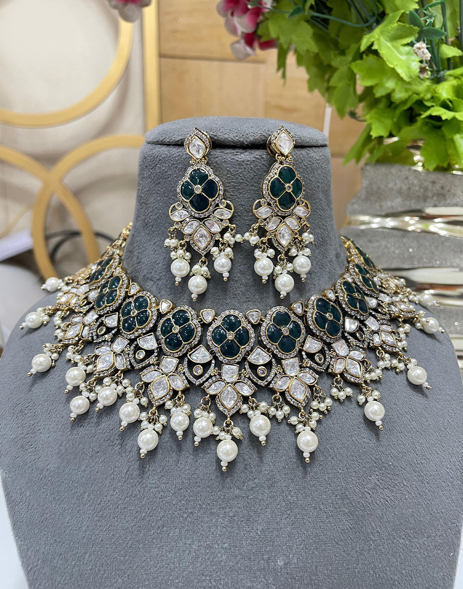 Royal White Green Kundan Necklace Set Bridal Jewelry for Weddings & Celebrations - Buy