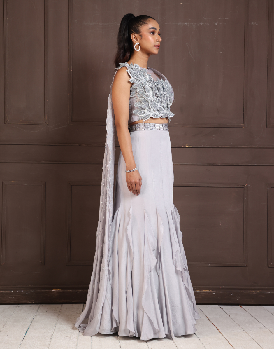 Silver Petal Embellished Lehenga Set