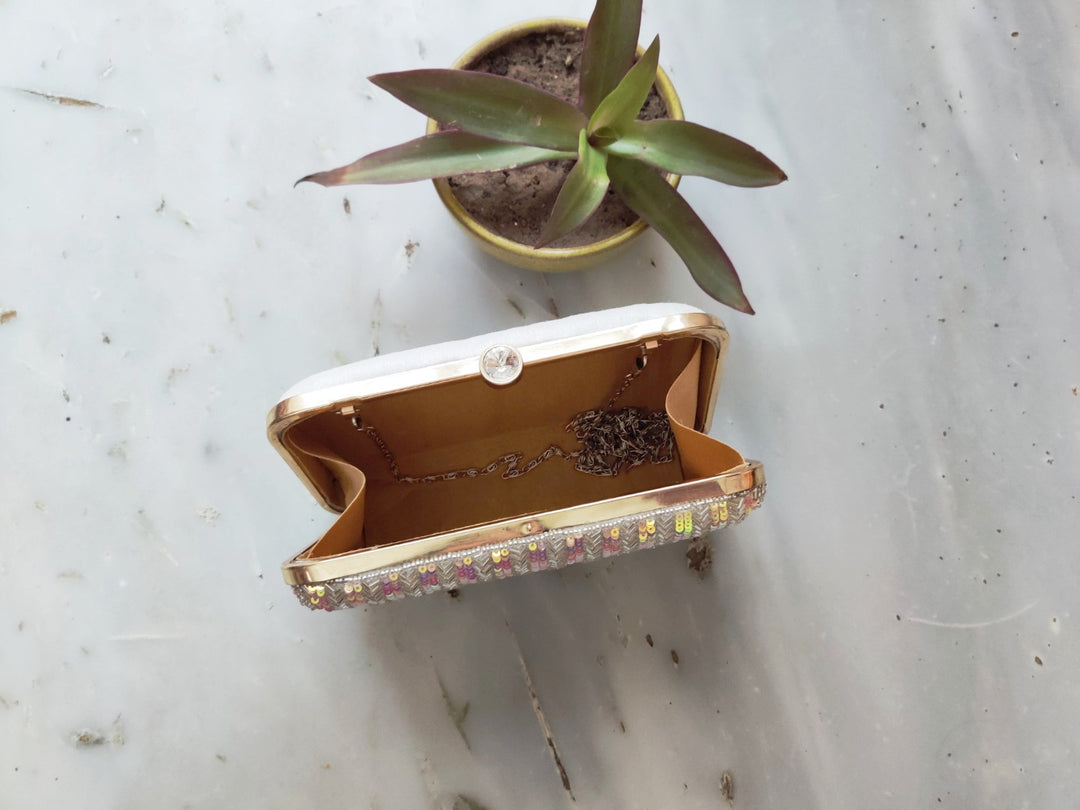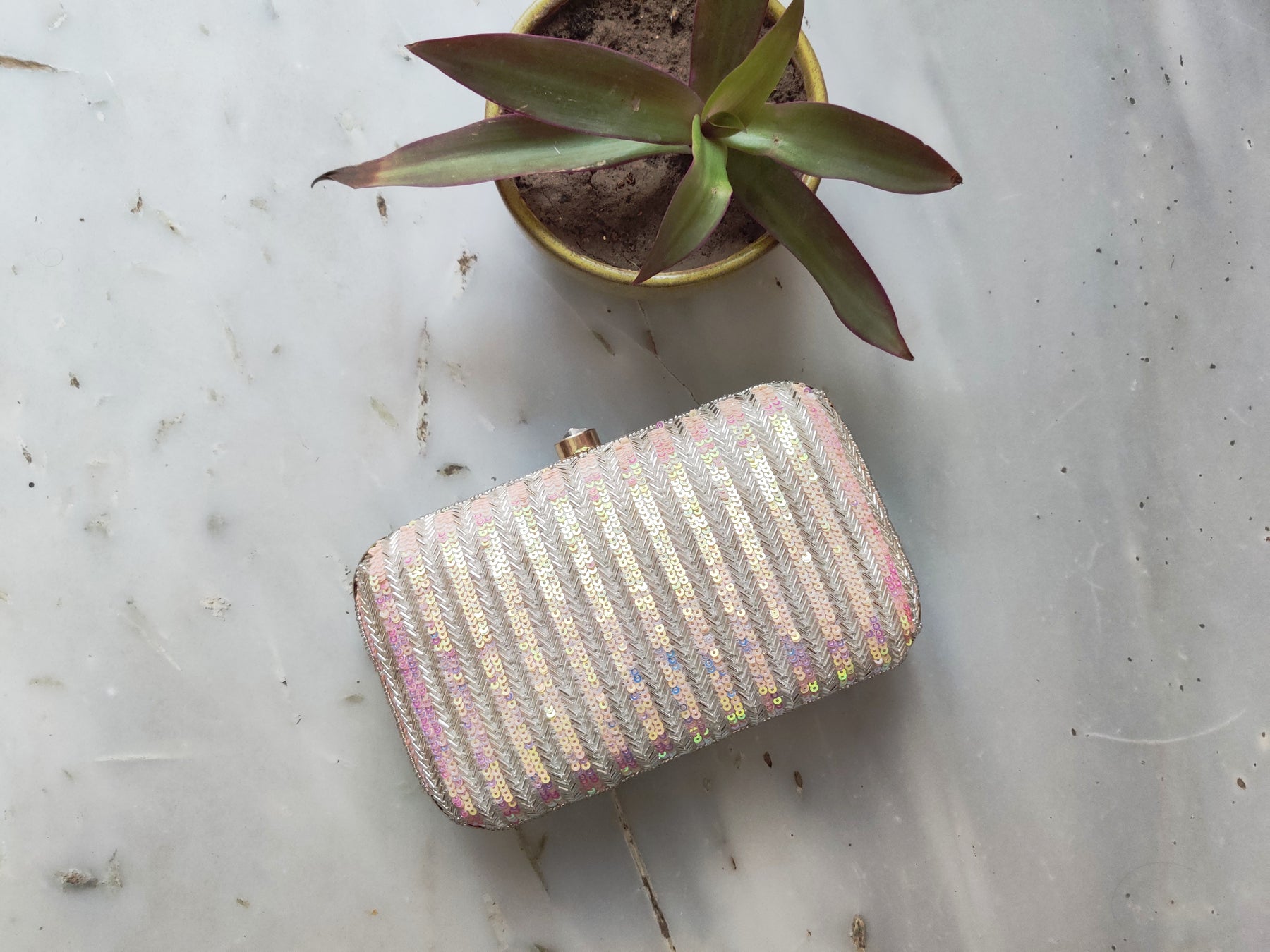 Silver Rainbow Hand-embroidered Clutch - Rent
