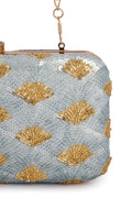 Clutch with sequins handwork on one side. The other side is Premium Silk Fabric. Clutch comes with a long Sling Chain