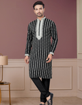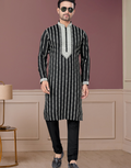 Stylish Black Kurta Pajama with White Thread Embroidery for Men Elegant Festive Wear - Buy