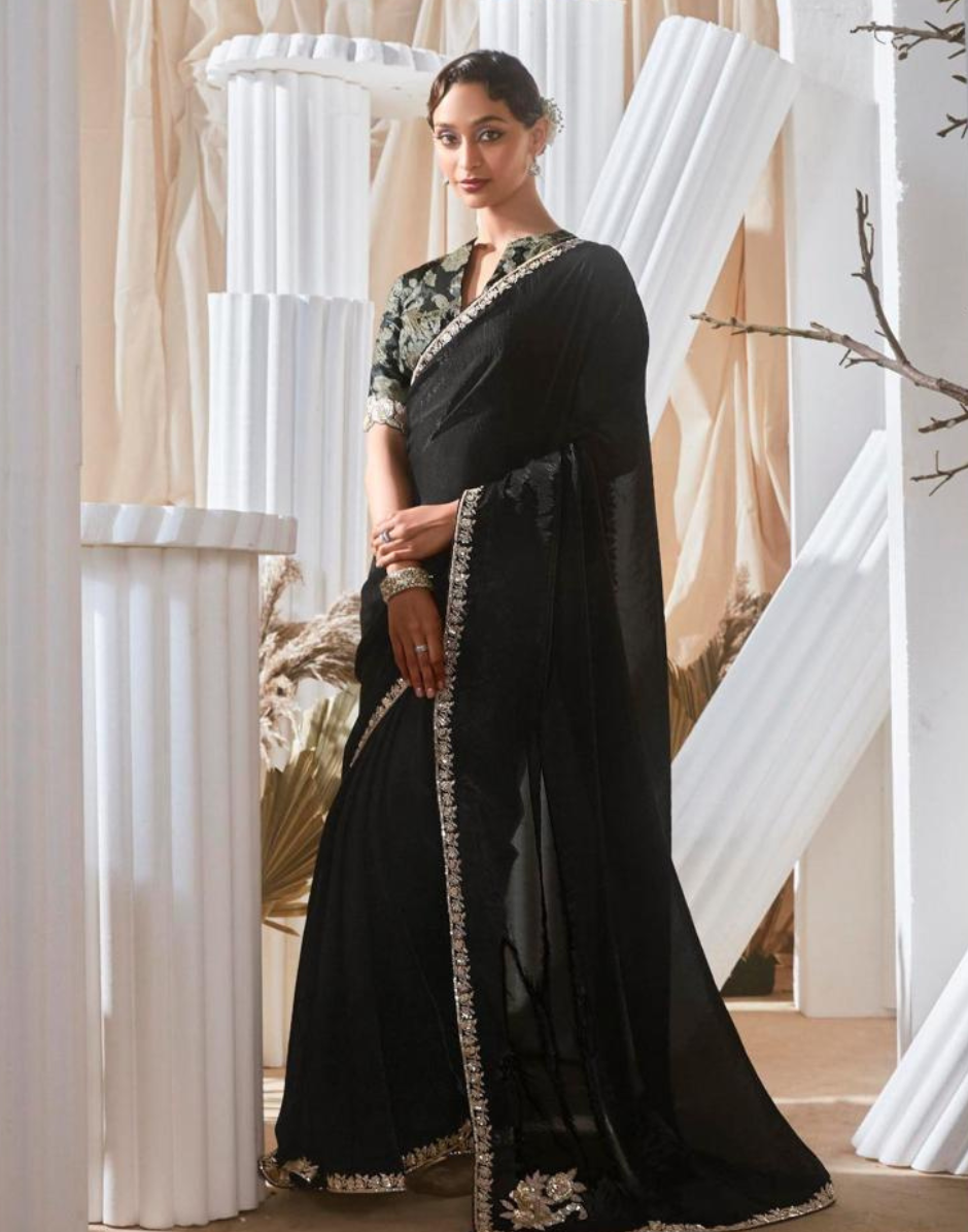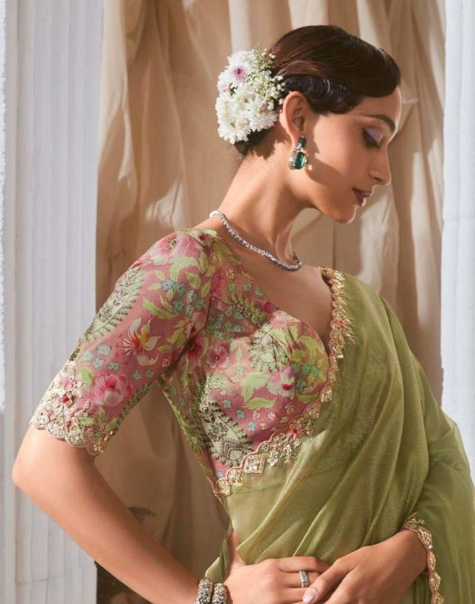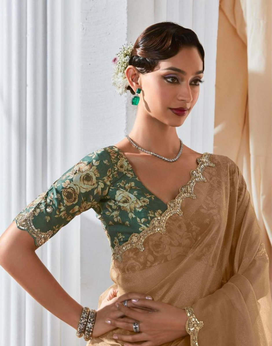 Stylish Lace Saree with Intricate Embroidery and Printed Blouse Bold & Beautiful - Buy
