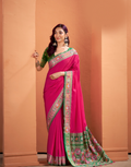 Elevate your festive wardrobe with this Traditional Patola Silk Saree, featuring a finely woven pallu and an intricate designer border. Crafted with precision, it embodies timeless elegance and rich cultural heritage. The luxurious silk fabric ensures comfort while the distinctive patterns make it an outstanding choice for special occasions. Perfect for those who appreciate authentic craftsmanship and classic style.