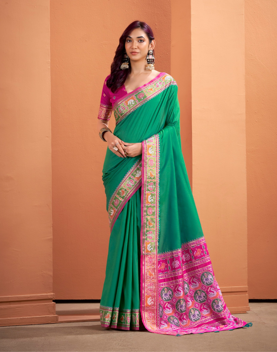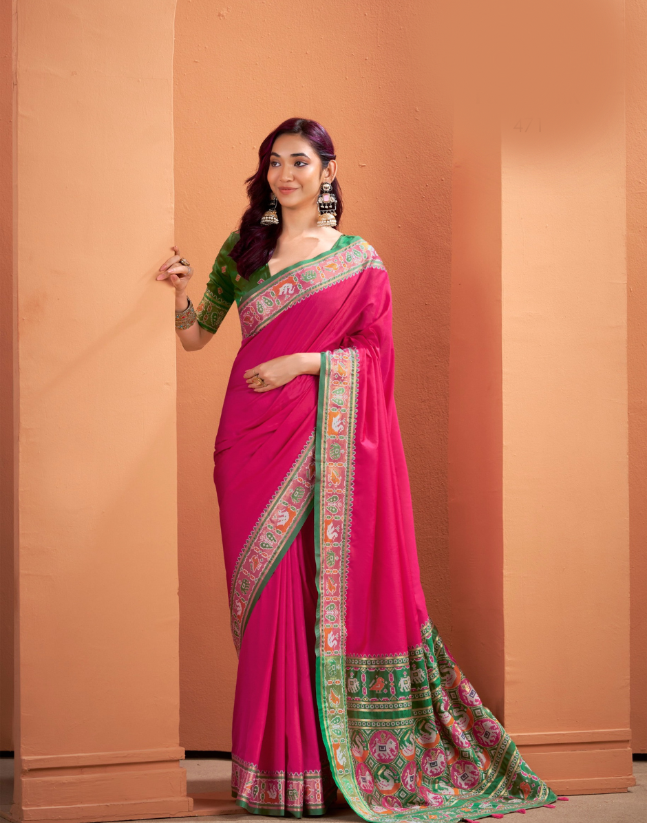 Traditional Patola Silk Saree with Woven Pallu & Designer Border Perfect for Festive Occasions - Buy